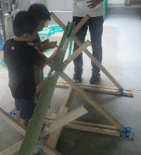 たくさんの人たちが行き交いながらキッズプラザに着きました。”こどものための博物館”の名のとおり、こどもたちはたくさんの遊びや面白い体験をたくさんすることができました。