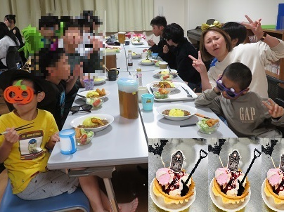 今年は思い思いの仮装をして、ホールで食事会をしました。職員含めて子ども達も楽しいハロウィンになったと思います。厨房職員の凝ったデザートも大盛況!!いつも美味しい食事と驚きのデザート有難うございます。