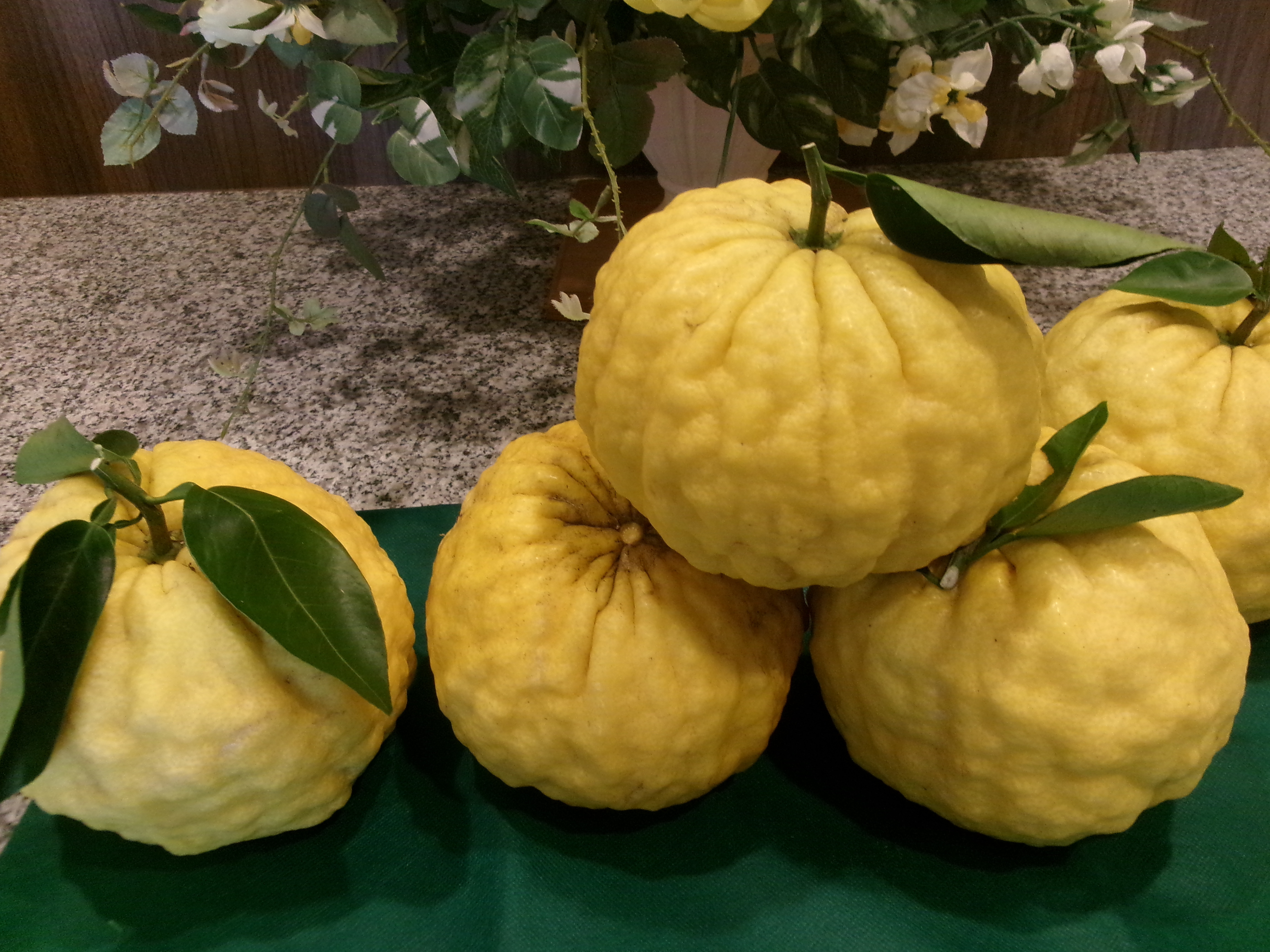 地域の方からたくさんのキウイ及び獅子柚子を頂きました。獅子柚子は、別名「鬼柚子」とも呼ばれる柑橘類の一種で、その個性的な見た目からこの名が付けられました。この特徴的な外観から、獅子柚子は悪霊を追い払う縁起の良いものとして、家の中に飾られたり、正月の飾り付けに使用されるとのことで早速玄関に飾りました。