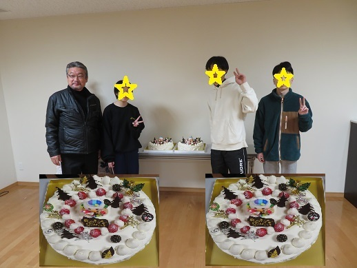 今日はクリスマス。いつも子ども達をサポートしてくださっている近畿まちづくり協会様より、クリスマスの大きなホールケーキを頂きました。今年は高校生の子ども達が受け取りました。いつもいつも本当にありがとうございます。